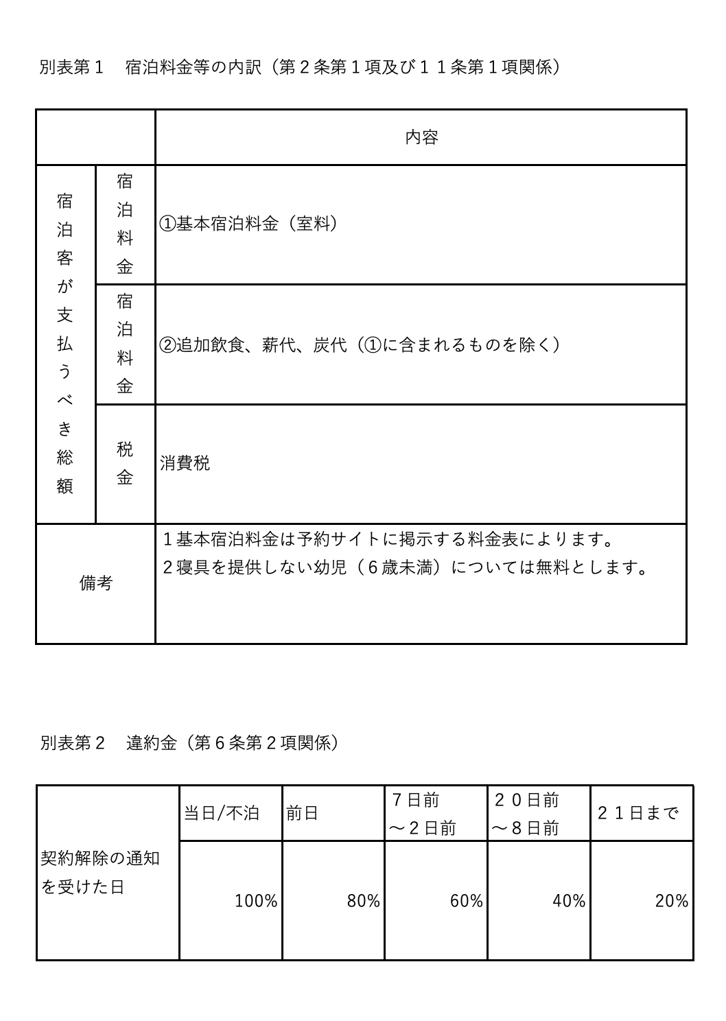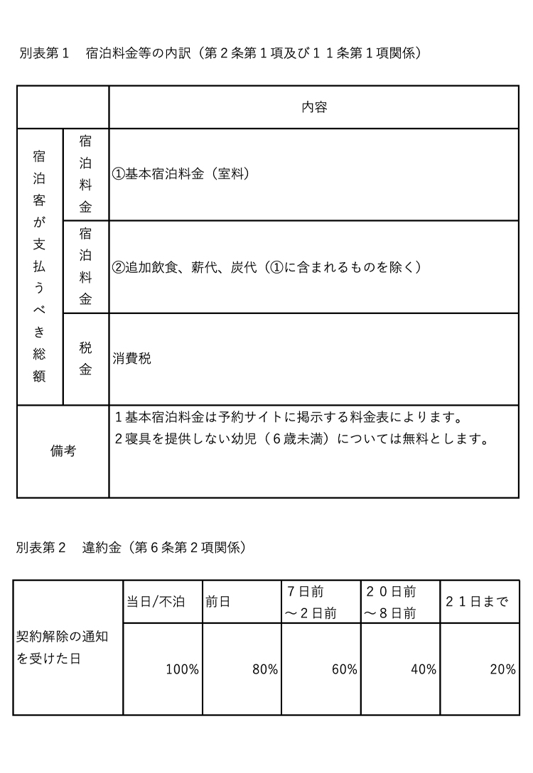 - 宿泊者が支払うべき宿泊料金等の内訳は、別表第1に掲げるところによります。